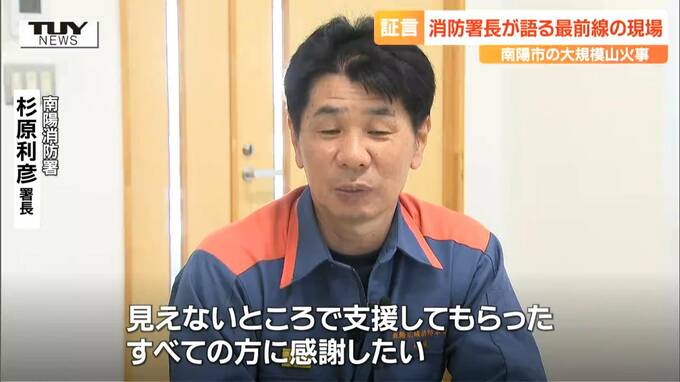 「平日にも関わらず、団員の方が1日をかけてローラー作戦をした。自衛隊の消火活動もリクエストに応えてくれたし、県・航空隊の方もそれぞれの立場で人とのかかわりが持てた。見えないところで支援をいただいている。すべての方に感謝したい」