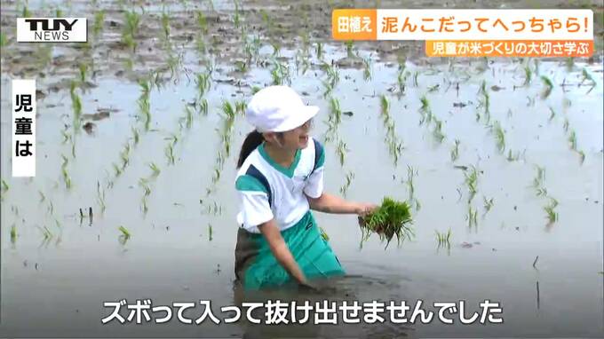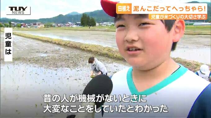 山形県東根市できょう、児童が昔ながらの田植えを体験し、米づくりの大切さを学びました。