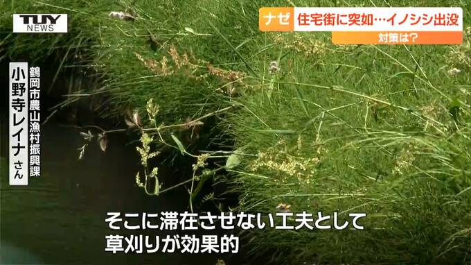 鶴岡市農山漁村振興課 小野寺レイナさん「そこに滞在させない工夫として草刈りが効果的。もともと昼行性で人にあいたくないから夜に動く。特に市街地の見慣れないところにきているので」
