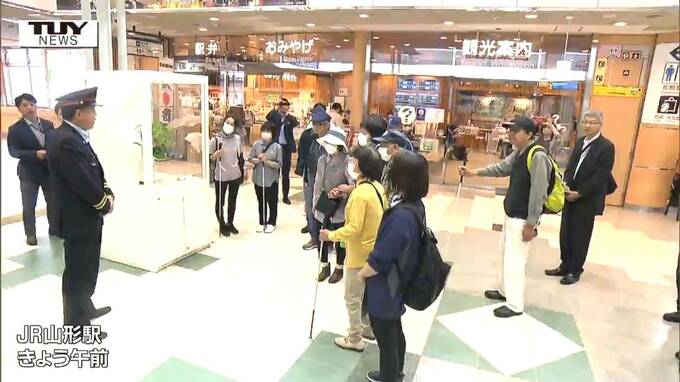 この講習会は、視覚に障がいのある人が駅や鉄道を安全に利用できるように、日本盲導犬協会がJRと協力して開いたもので、白杖(はくじょう)を使っていたり、盲導犬とともに生活していたりする8人が参加しました。