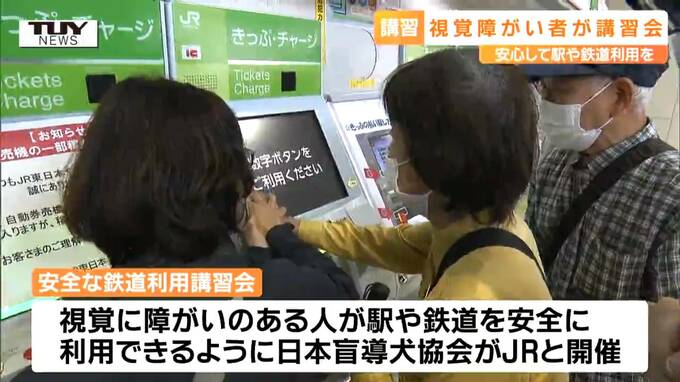 きょうの講習会ではこうした事故を防ぐため、駅の自動券売機の使い方から、実際にホームに停車している電車に乗り込むまでの一連の動作を確認しました。