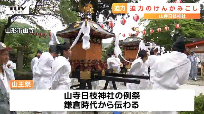 山形県山形市の山寺ではきょう、けんか神輿で知られる山王祭が行われ、街が活気に溢れました。