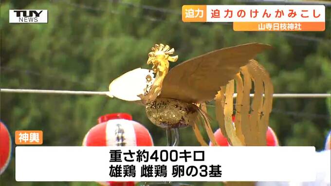 祭りの主役は、神輿の重さおよそ400キロの雄鶏、雌鶏、卵の3基の神輿。
