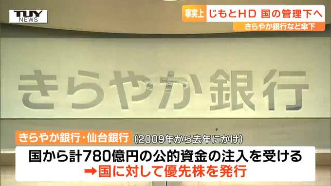 きらやか銀行と仙台銀行を傘下に持つ「じもとホールディングス」が、事実上、国の管理下に入る見通しになったことがわかりました。