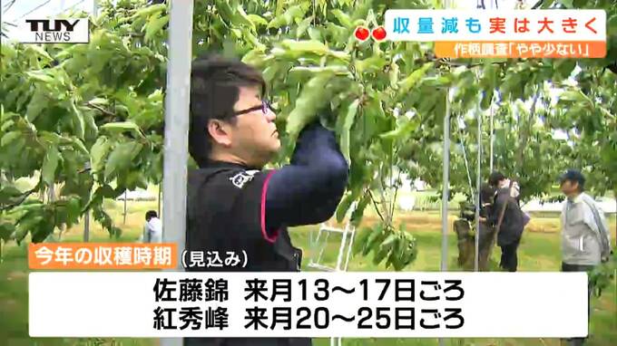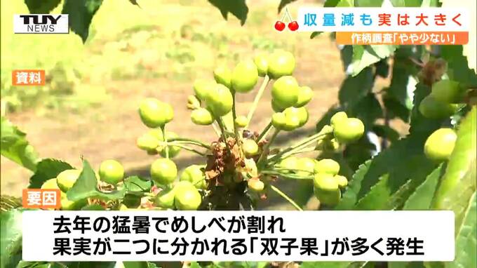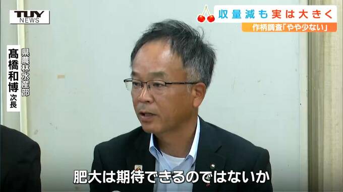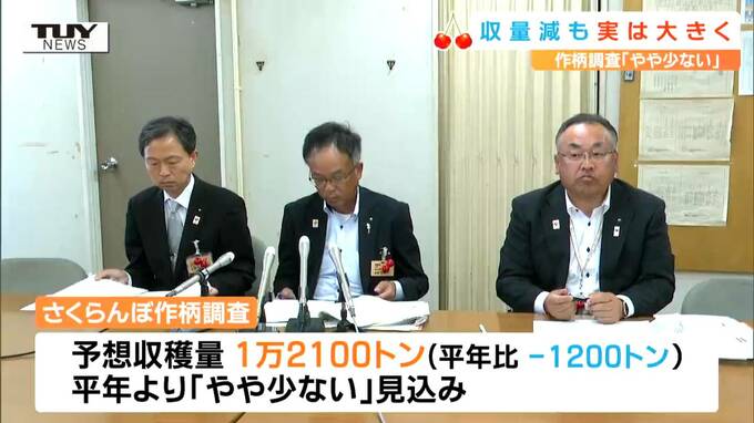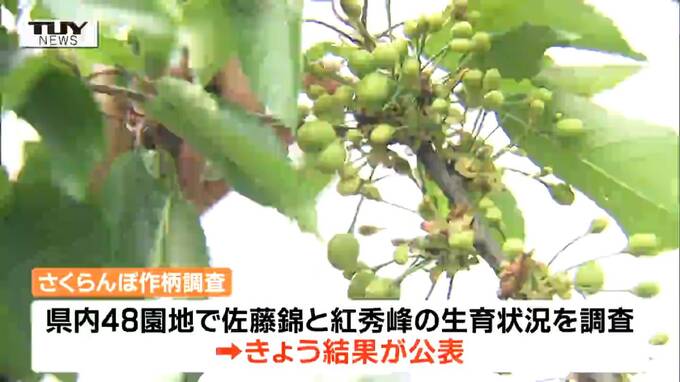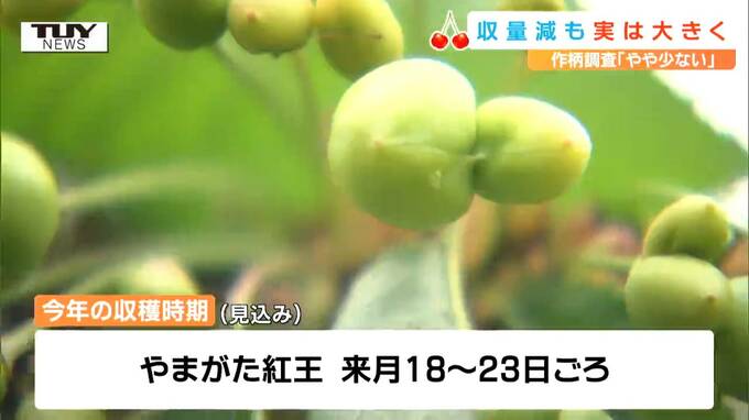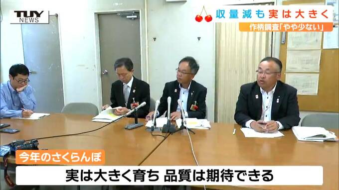 山形県はきょう、今年のさくらんぼの作柄調査の結果を公表しました。収穫量は平年よりも少ないものの、実は大きく育っているということです。