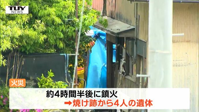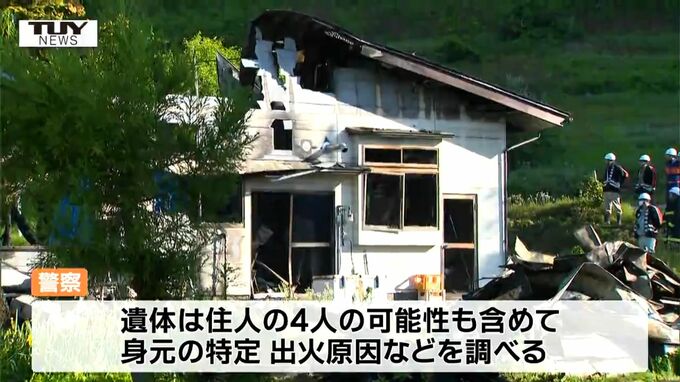 警察では、遺体は住人の4人の可能性も含めて身元の特定を進めるとともに出火原因などを調べています。