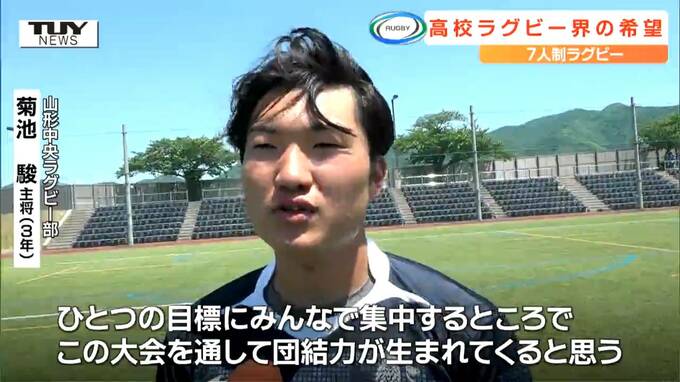 山形中央ラグビー部 菊池駿 主将(3年)「ほかの競技よりも体を当てたり、助け合いの競技だと思う。自分たちは人数が少ないのもあるが、ひとつの目標にみんなで集中するところで、この大会を通して団結力が生まれてくると思う」