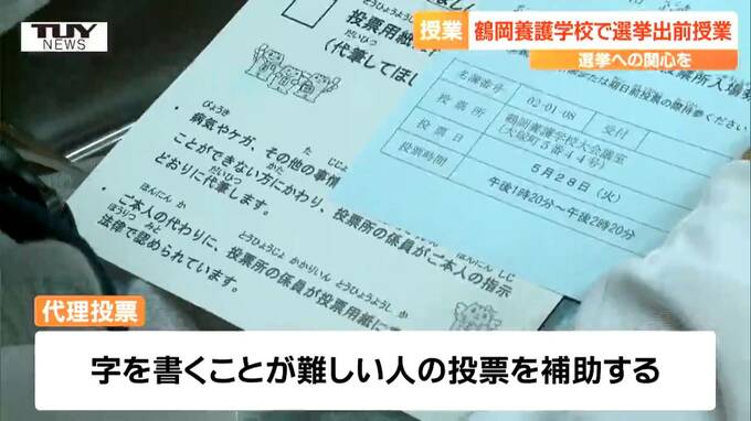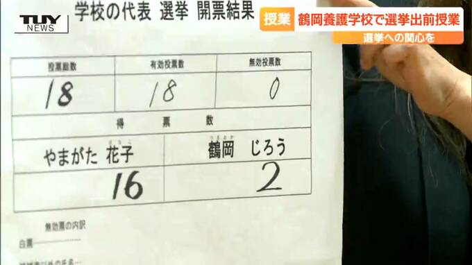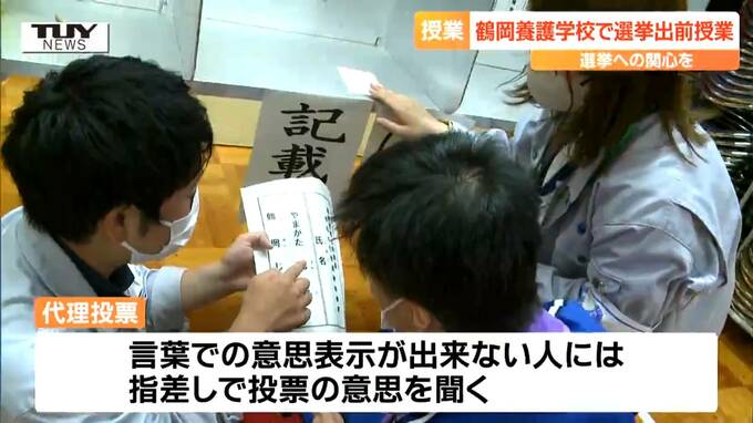 県立鶴岡養護学校で、まもなく18歳を迎える生徒たちに選挙への関心を持ってもらおうと、出前授業が開かれました。