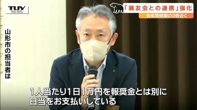 山形市の担当者「アーバンベア対応ということで、街中にクマが出てきた場合、猟友会や自治体に出動をお願いするが、一人当たり一日1万円を、報奨金とは別に、日当をお支払いしている」