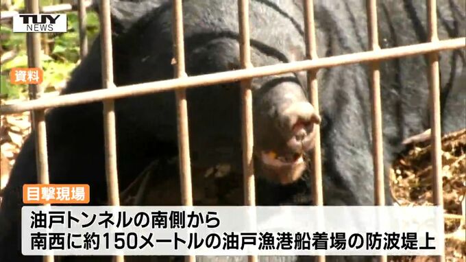 現場は油戸トンネルの南側から南西におよそ150メートルいった油戸漁港船着場の防波堤上で、クマは北東の山中に走り去ったということです。
