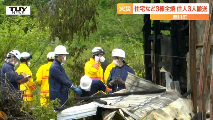 「骨組みしか残っていない」3棟全焼火災 住人の親子3人がのどの痛みなどを訴え病院搬送 命に別状なし(山形・西川町) 2024年6月3日(月) 18:23 国内 昨夜、山形県西川町で住宅と作業小屋など合わせて3棟が全焼し、住人3人が病院に運ばれました。警察などがきょう実況見分を行いましたが、出火原因の特定には至っていないということです。警察や消防によりますと、…