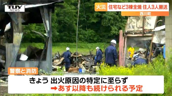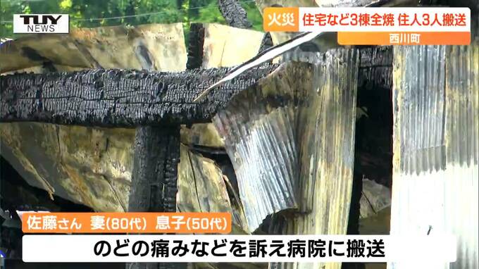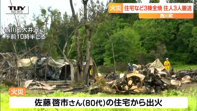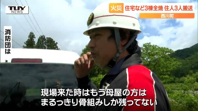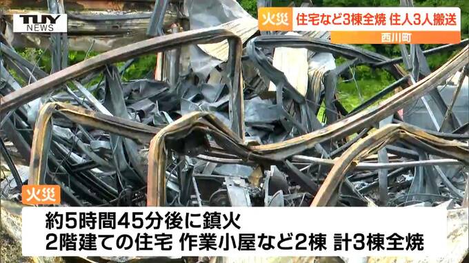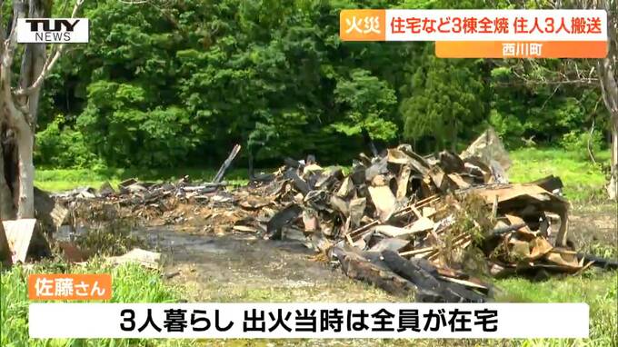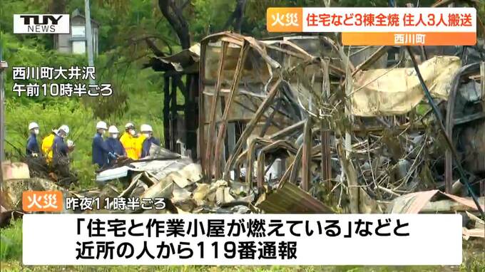 昨夜、山形県西川町で住宅と作業小屋など合わせて3棟が全焼し、住人3人が病院に運ばれました。