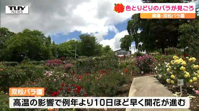 魅力たっぷりの双松バラ園のバラまつりは、来月上旬まで開催されています。