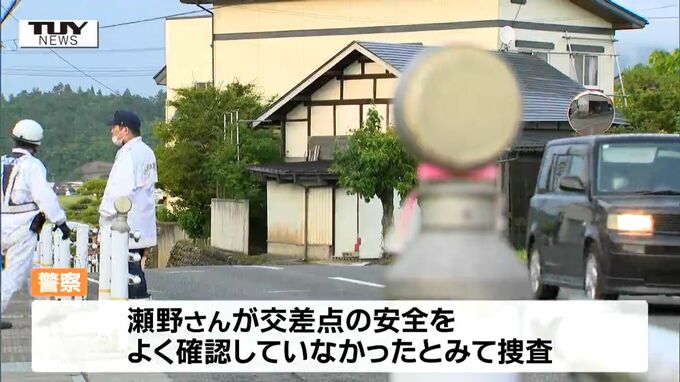 現場は、信号機や止まれの標識がなく、警察では、瀬野さんが交差点の安全をよく確認していなかったとみて調べを進めています。