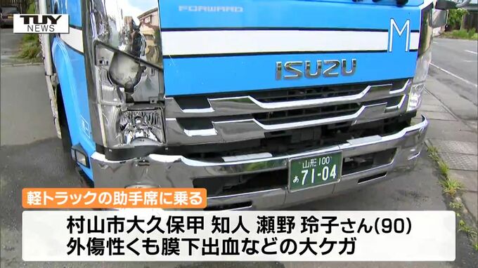 きのう夕方、山形県村山市で起きたトラックと軽トラックが衝突し高齢女性2人がケガをした事故について、女性は、脳挫傷などの大ケガをしたことが分かりました。