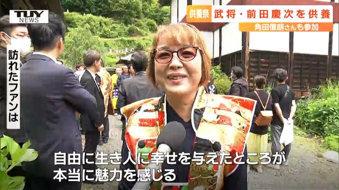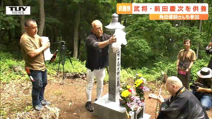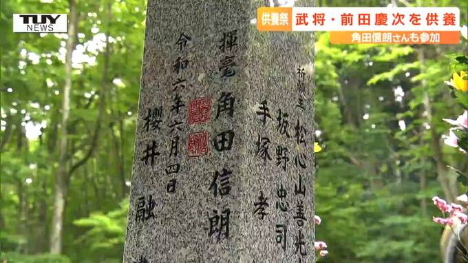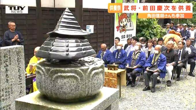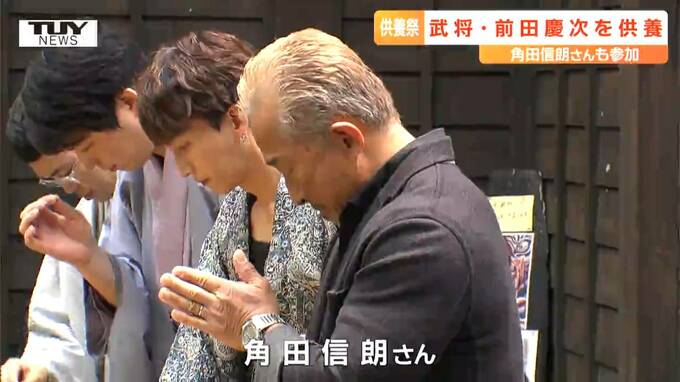 供養祭には、全国から多くのファンが参列し、市の観光大使で前田慶次の大ファンとしても知られる空手家でタレントの角田信朗さんも訪れました。