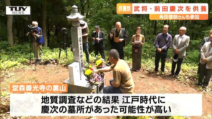 3年前に、地元の考古学研究者などが地質調査などを行ったところ、江戸時代に慶次の墓所があった可能性が高いことがわかりました。そのため、今回の供養祭に合わせ、墓石を新たに作ったということです。