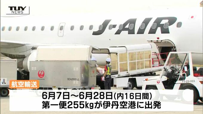 今シーズンは、きょうから今月28日までの間で、16日間航空輸送が行われ、けさの第一便では255キロのさくらんぼが伊丹空港に向け飛び立ちました。
