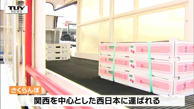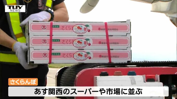 きょう運ばれたさくらんぼは、あすにも関西のスーパーや市場に並べられるということです。