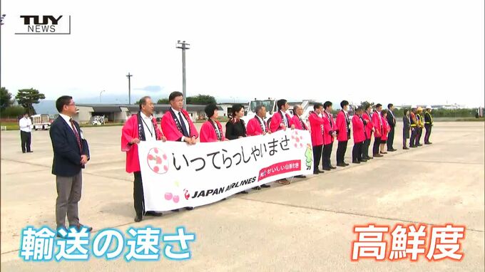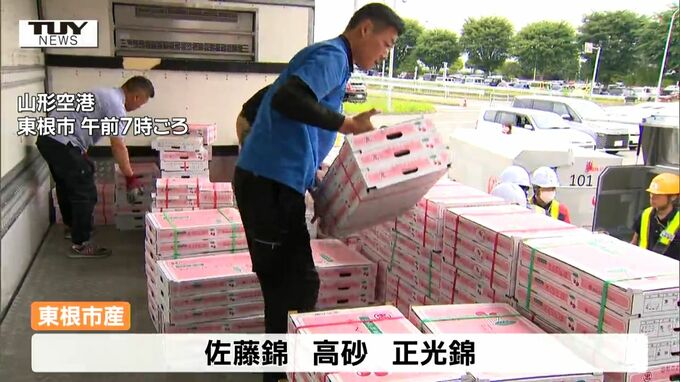 今が旬のさくらんぼを新鮮に届けようと、きょうから航空機での輸送が始まり、けさ、関西方面へ向かう第一便が飛び立ちました。