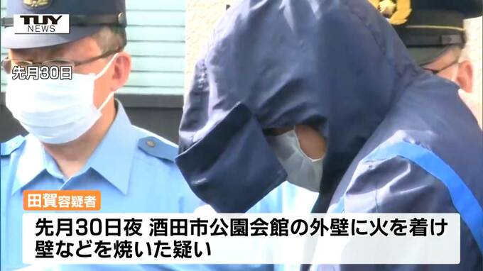 田賀容疑者は先月30日の夜に酒田市公園会館の外壁に火をつけ、壁などを焼いた疑いがもたれています。