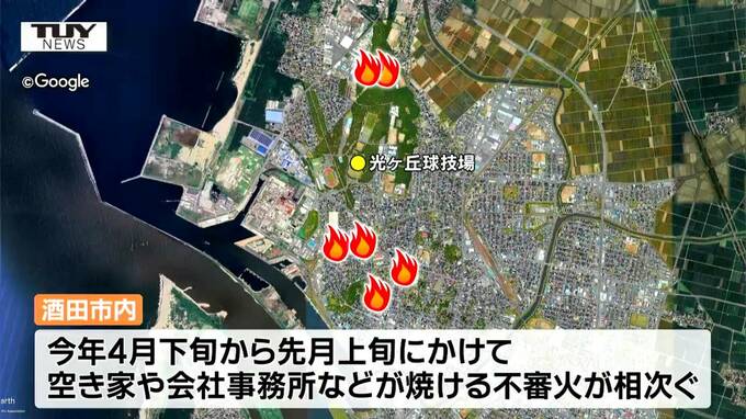 酒田市内では、今年4月下旬から先月上旬にかけて、空き家や会社事務所などが焼ける不審火が相次いでいて、このうち複数の現場で油の成分が検出されているということです。