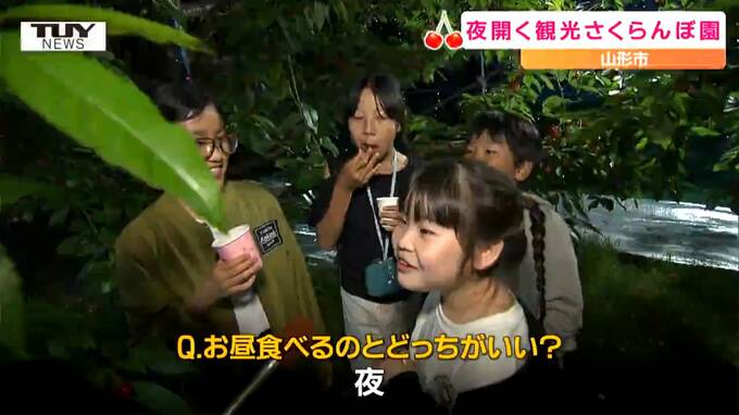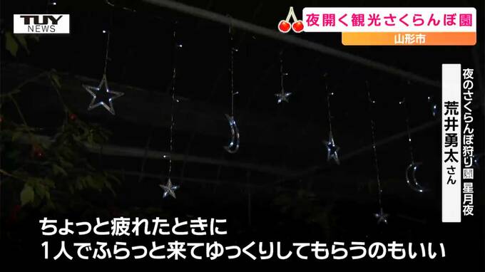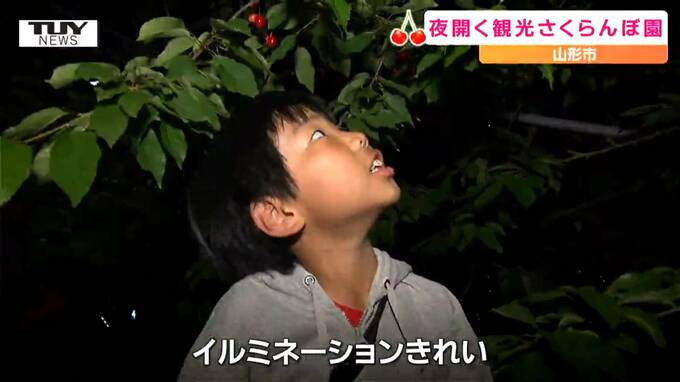 訪れた人「夜になるとさくらんぼをなかなか見つからないで探すっていう、なんかちょっと楽しみみたいのありますね。」