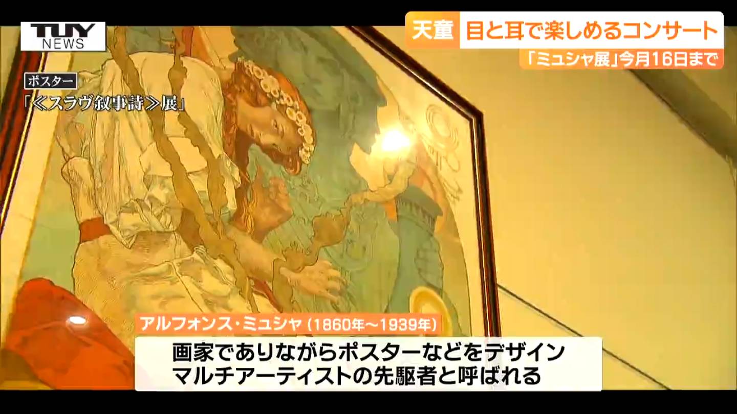 会場では、ミュシャが過ごしたパリの音楽などが演奏され、訪れた人は、目と耳でミュシャの世界を楽しんでいました。