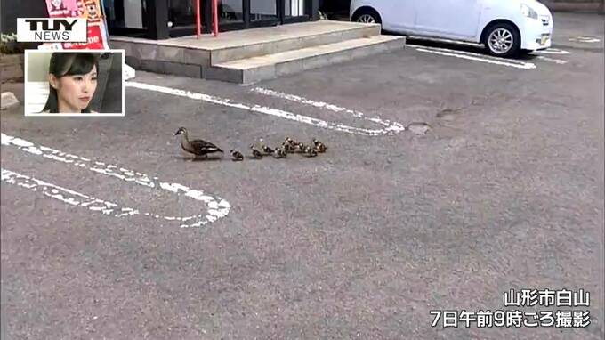 続いてはこちら、先週金曜日にNスタやまがたで紹介した、カルガモの親子が列を作って歩いていた話題です。