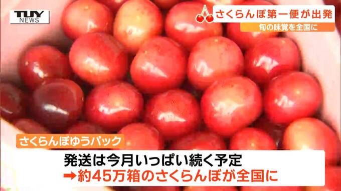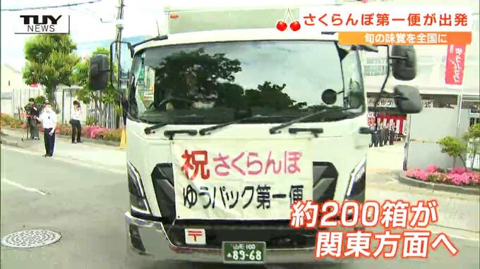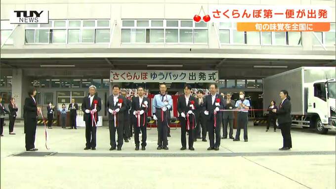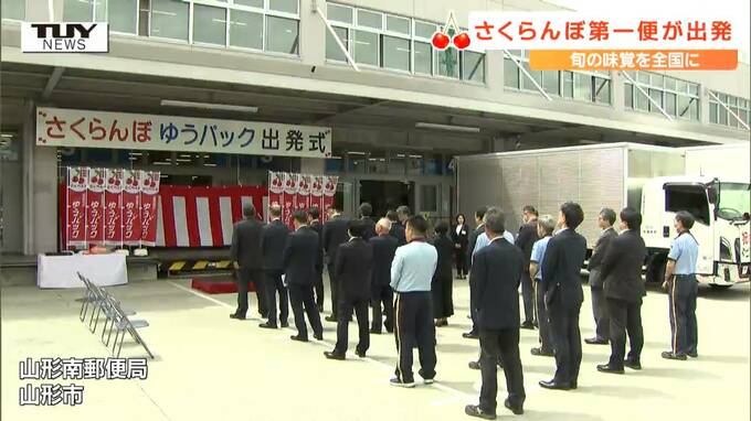 旬の味覚を全国に届けるさくらんぼゆうパックの第一便が、きょう山形県山形市から出発しました。