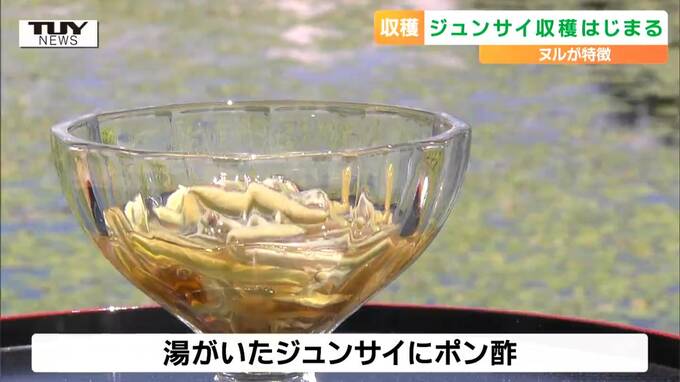 水で洗いサッと湯がいたジュンサイをポン酢と一緒にいただきました。