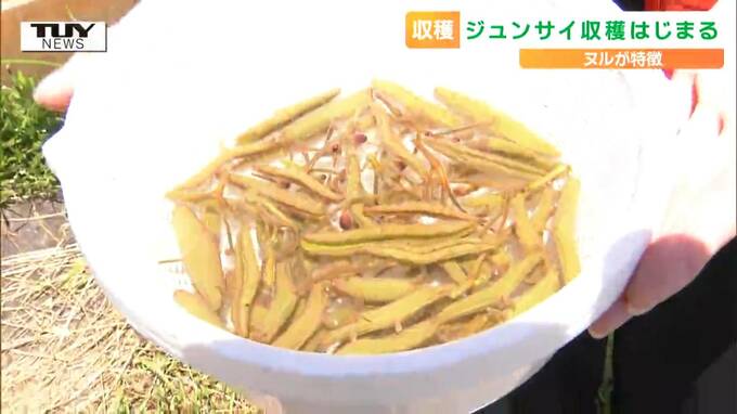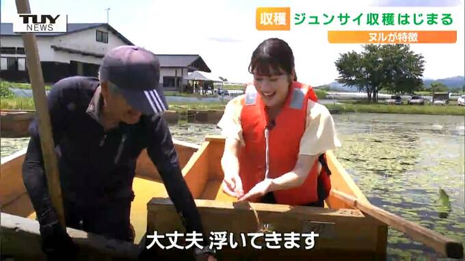 「見てください。たくさんのジュンサイが採れました。これから食べるのが楽しみです」