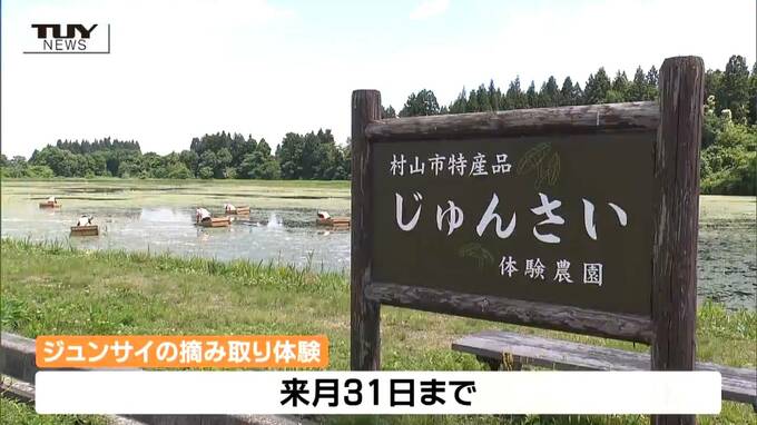 子どもから大人まで楽しめるジュンサイの摘み取り体験は来月31日まで行われています。