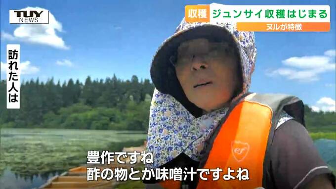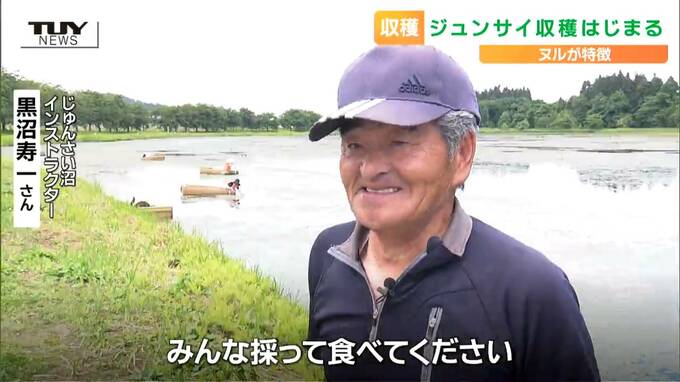 じゅんさい沼 黒沼寿一さん「天然でヌルもすごく多くて今年もいっぱい採れています。みんな採って食べてください。」
