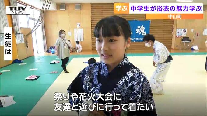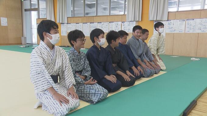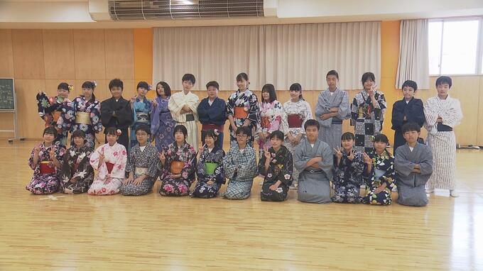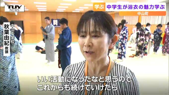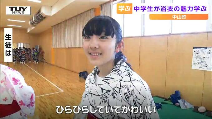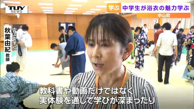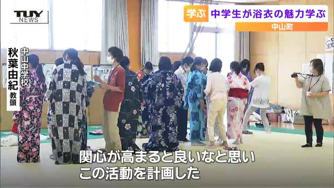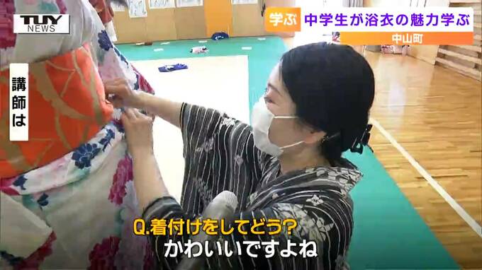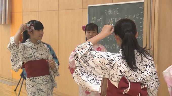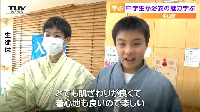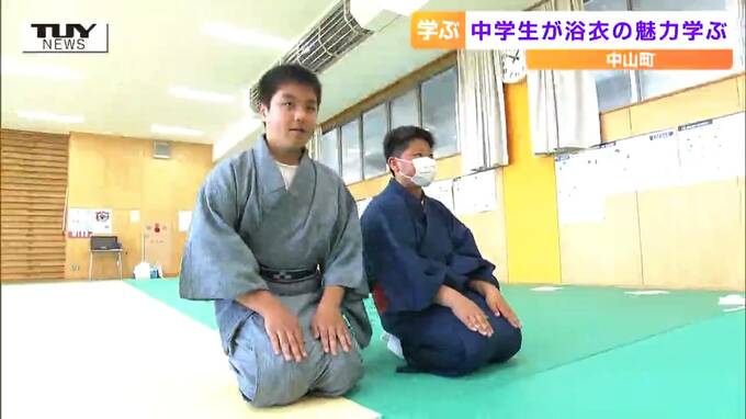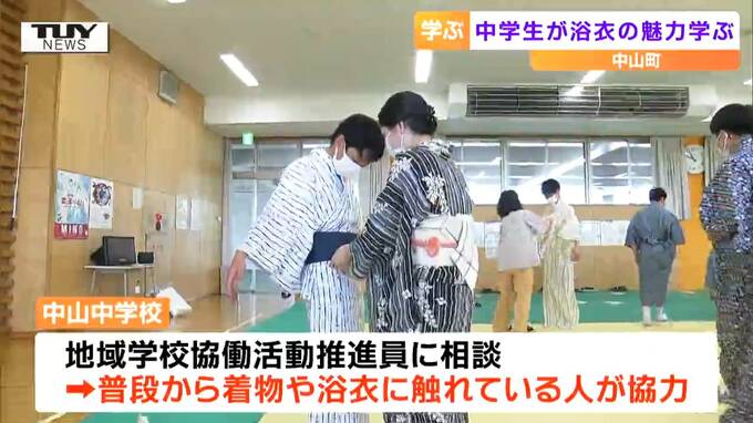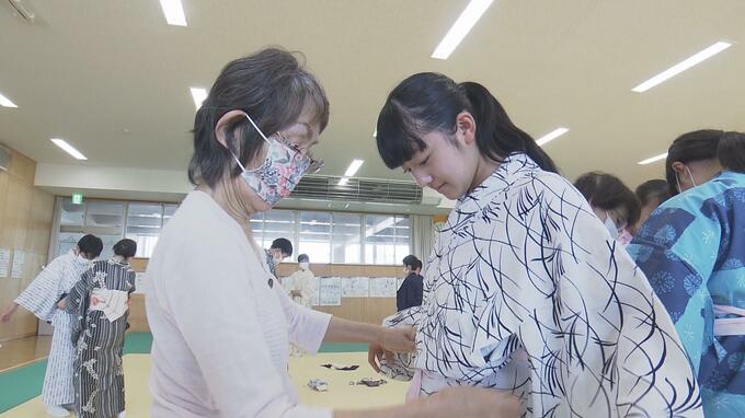 きょう山形県中山町の中学校で、日本の伝統文化のひとつ「和服」の良さを学ぼうと、生徒たちが浴衣の着付けを体験しました。