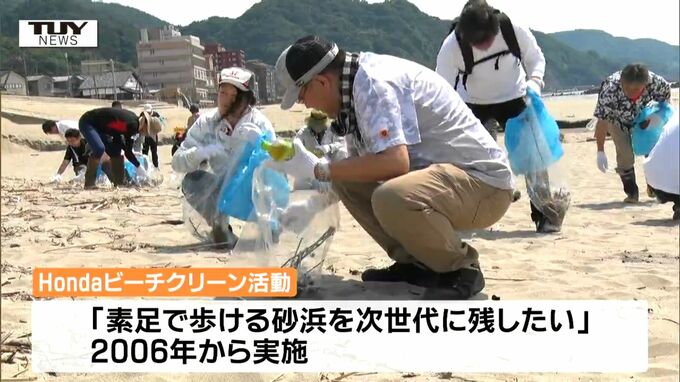 この清掃活動は、「素足で歩ける砂浜を次世代に残したい」という思いからホンダが2006年から行っているもので、きのうは、鶴岡市の湯野浜海水浴場で従業員などが清掃活動を行いました。