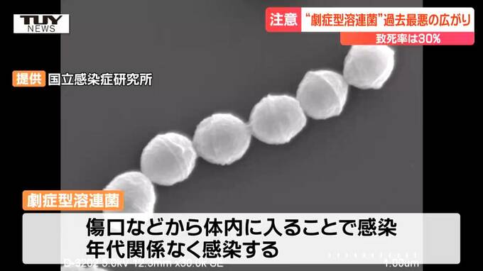 劇症型溶連菌は、子どもが感染しやすい溶連菌と違い、傷口などから体内に入ることで感染するといわれ、年代関係なく感染が確認されています。