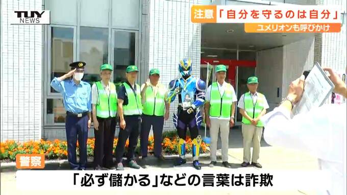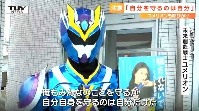 ご当地ヒーロー未来創造戦士ユメリオン「今、俺のいる最上地域でも特殊詐欺が増えている。もちろん、俺もみんなのことを守るが、自分自身を守るのは自分だけだ」