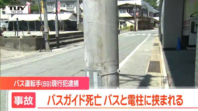 死亡バスガイドは宮城県の39歳の女性 バスと電柱に挟まれる事故で即死状態 宮城県の69歳バス運転手を現行犯逮捕(山形・上山市) 2024年6月17日(月) 20:08 国内 土川怜音 記者「上山市の事故現場です。観光バスを誘導していたバスガイドが運転手と連携が取れずこちらの電柱に挟まった」誘導中のバスガイドが大型バスと電柱に挟まれ死亡。警察は、バスを運転していた69歳の男…