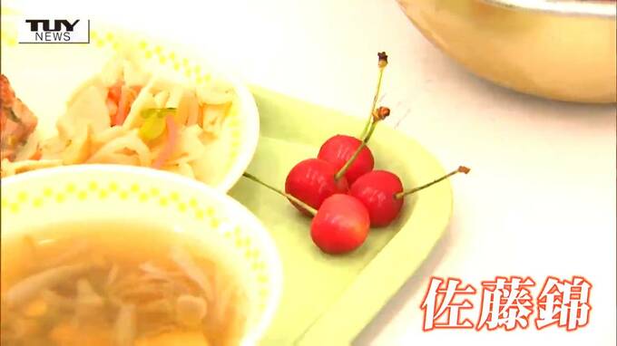 きょうの給食は、市特産の「ジュンサイ」が入ったすまし汁と、市内で採れた佐藤錦がひとり5粒の特別給食。なんとも贅沢です。