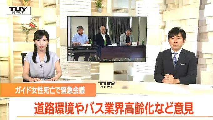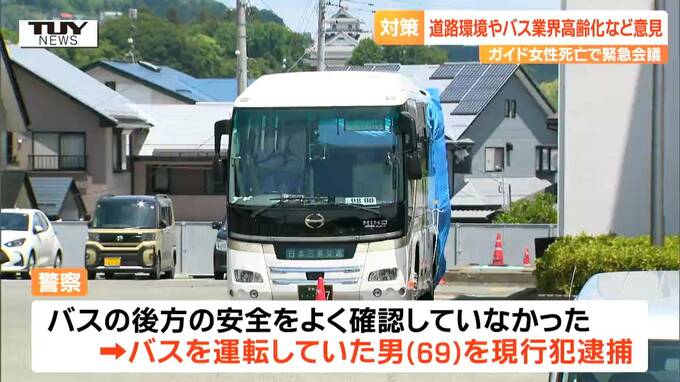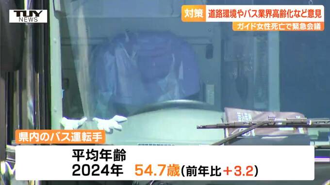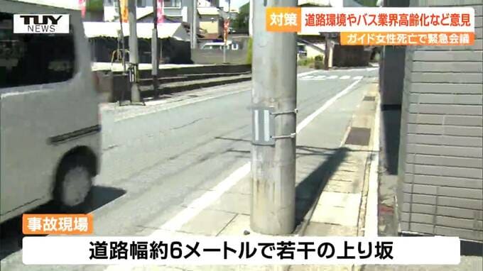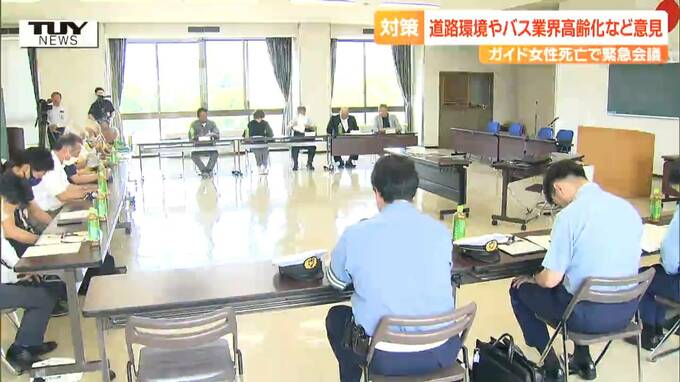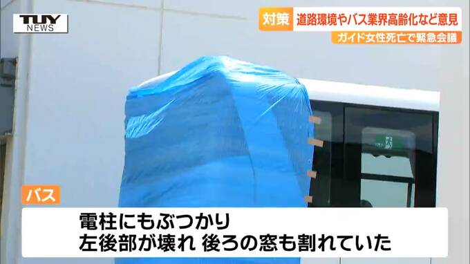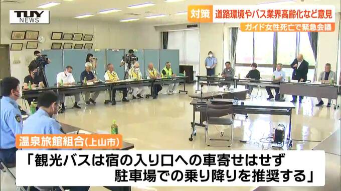 おととい、山形県上山市の温泉街で、バスガイドの女性がバスと電柱に挟まれ死亡した事故を受け、きょう関係者が集まり対策会議が開かれました。