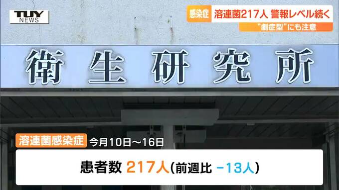 県衛生研究所によりますと、今月16日までの1週間で報告があった溶連菌感染症の患者数は217人で、前の週より13人減りました。