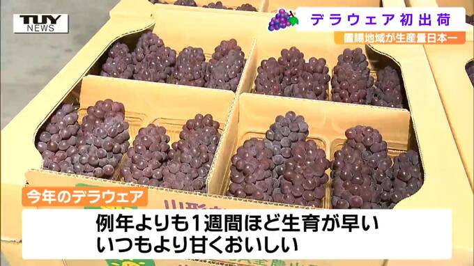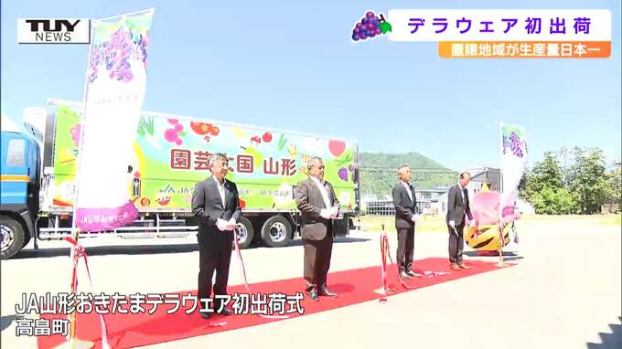 ぶどう「デラウェア」の生産量日本一を誇る置賜地域で、今シーズンの出荷がはじまり、きょう高畠町で出荷式が行われました。