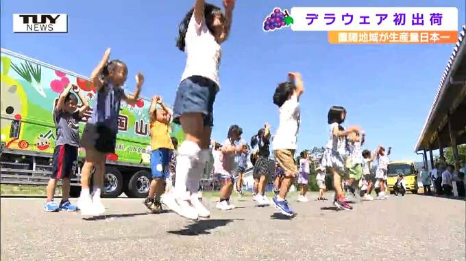 きょうは今年のデラウェアの初の出荷式が行われ、テープカットのほか、園児たちのかわいらしいダンスで出荷を祝いました。