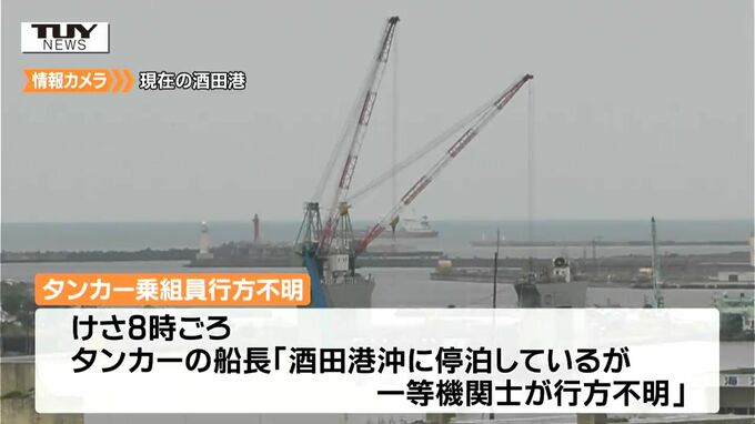 酒田海上保安部によりますと、けさ8時ごろ、「酒田港沖に停泊しているが、一等機関士が行方不明になっている」とタンカーの船長から通報があったということです。