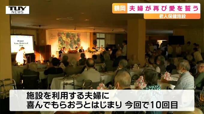 鶴岡市の老人保健施設「のぞみの園」で開かれたのは、英語で「誓いの更新」という意味がある"バウ・リニューアル"。
