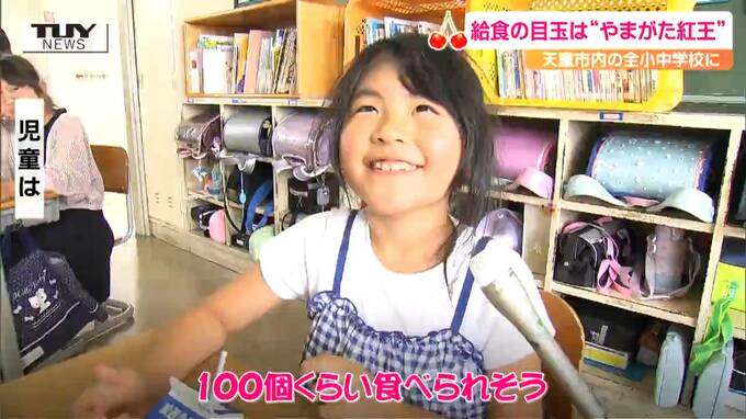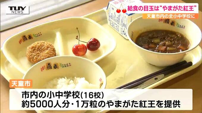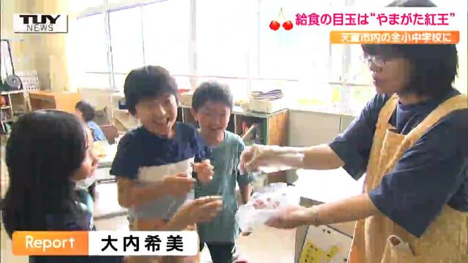 きょうは、市内に16校ある全ての小中学校で、およそ5000人分、1万粒のやまがた紅王が提供されたということです。