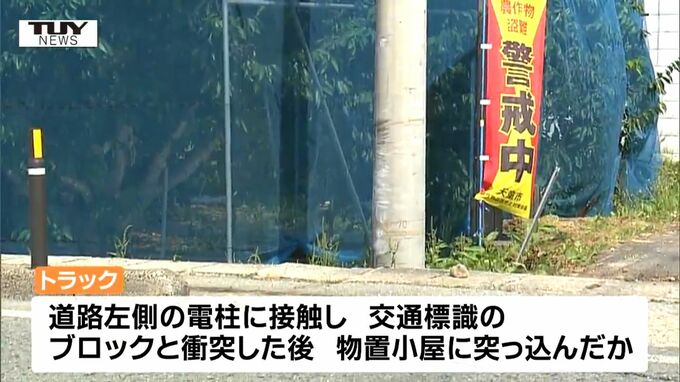 警察によりますとこの事故は22日午前6時20分ごろ、天童市川原子の国道48号で、トラックが道路左側の小屋に衝突したものです。