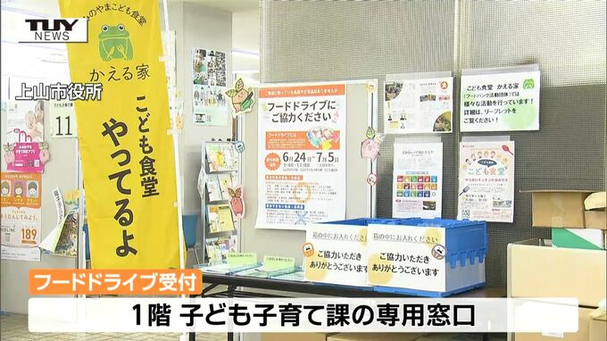 きょうからフードドライブを受け付けているのは、上山市役所1階の子ども子育て課の専用窓口です。