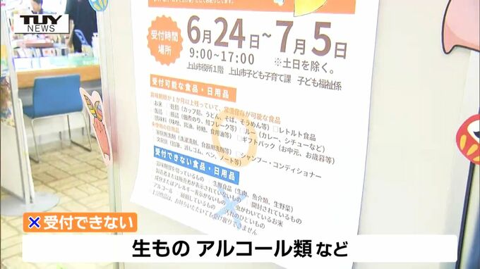 上山市の受け付けは、来月5日までとなっていて、集まったものは、市内で活動する団体を通して、必要としている子育て世帯などに届けられるということです。